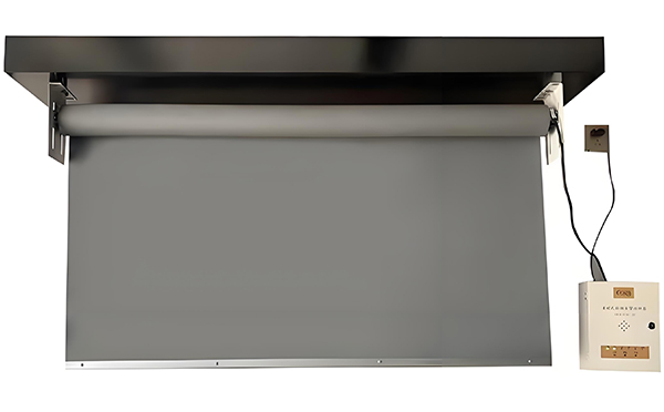连接电源线和控制线,将博乐挡烟垂壁安装在支架上,并用螺丝固定。